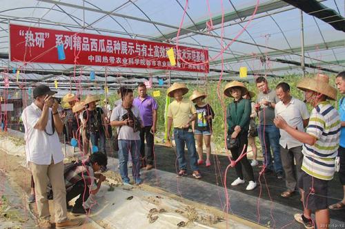 培训班学员还实地参观了广州实验站精品西瓜优质高效栽培示范基地,就西瓜设施栽培技术的实施与实践进行了实地观摩和交流探讨。对广州实验站展示的热研系列精品西瓜优良品种和立体吊蔓、水肥一体、一苗多收、双蔓双果、楼宇栽培、绿色防控、水肥管理等技术学员们觉得耳目一新、充满兴趣,纷纷表示希望将热科院的品种和技术应用到生产中去,提升产品品质,提高经济效益。