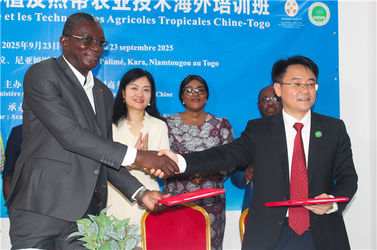 开班仪式上,中国热科院与多哥国家农业研究所(Institut Togolais de Recherche Agronomique,ITRA)签署科技合作谅解备忘录,并围绕后续合作重点与形式进行了深入交流。