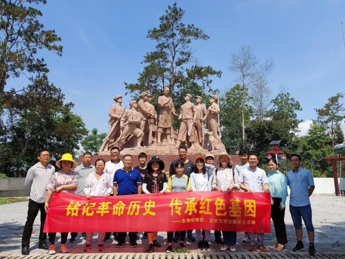 在中国共产党建党100周年之际,为加强党员党史学习教育,进一步夯实支部建设,做到学史明理、学史增信、学史崇德、学史力行,学党史、悟思想、办实事、开新局,增强党员科技报国的使命感和责任感。生物所第四党支部和第五党支部全体党员于4月22日赴白沙起义纪念园和五指山革命根据地纪念园开展“铭记革命历史、传承红色基因、学党史强党性”主题党日活动,生物所党委书记宋应辉、副所长吴波参加了所在支部活动。