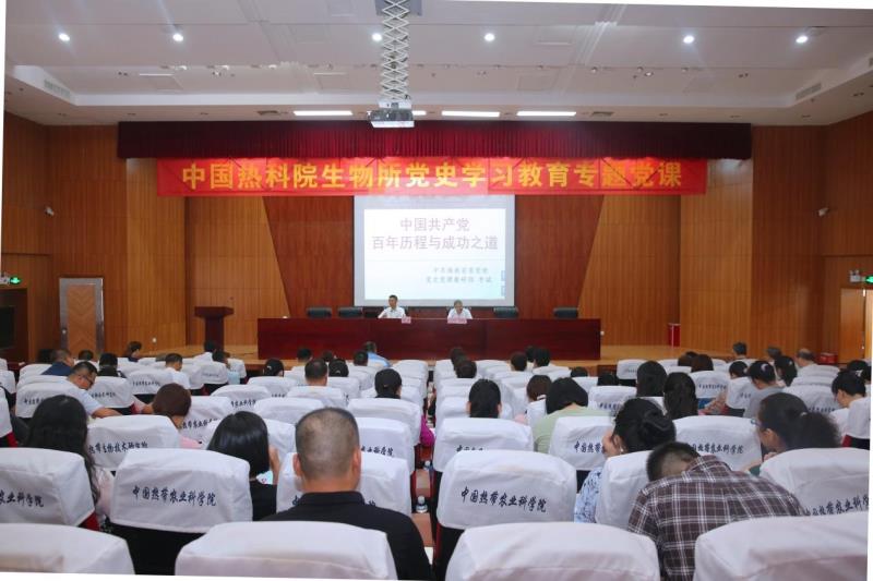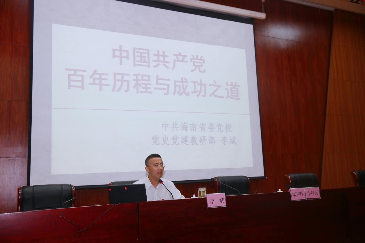 为贯彻落实中共中央办公厅《关于在全社会开展党史、新中国史、改革开放史、社会主义发展史宣传教育的通知》,扎实推进我所党史学习教育,6月3日下午,邀请海南省委党校李斌教授为全所干部职工讲授“中国共产党百年历程与成功之道”专题党课。党课由党委书记宋应辉主持,全所干部职工共130多人参加学习。