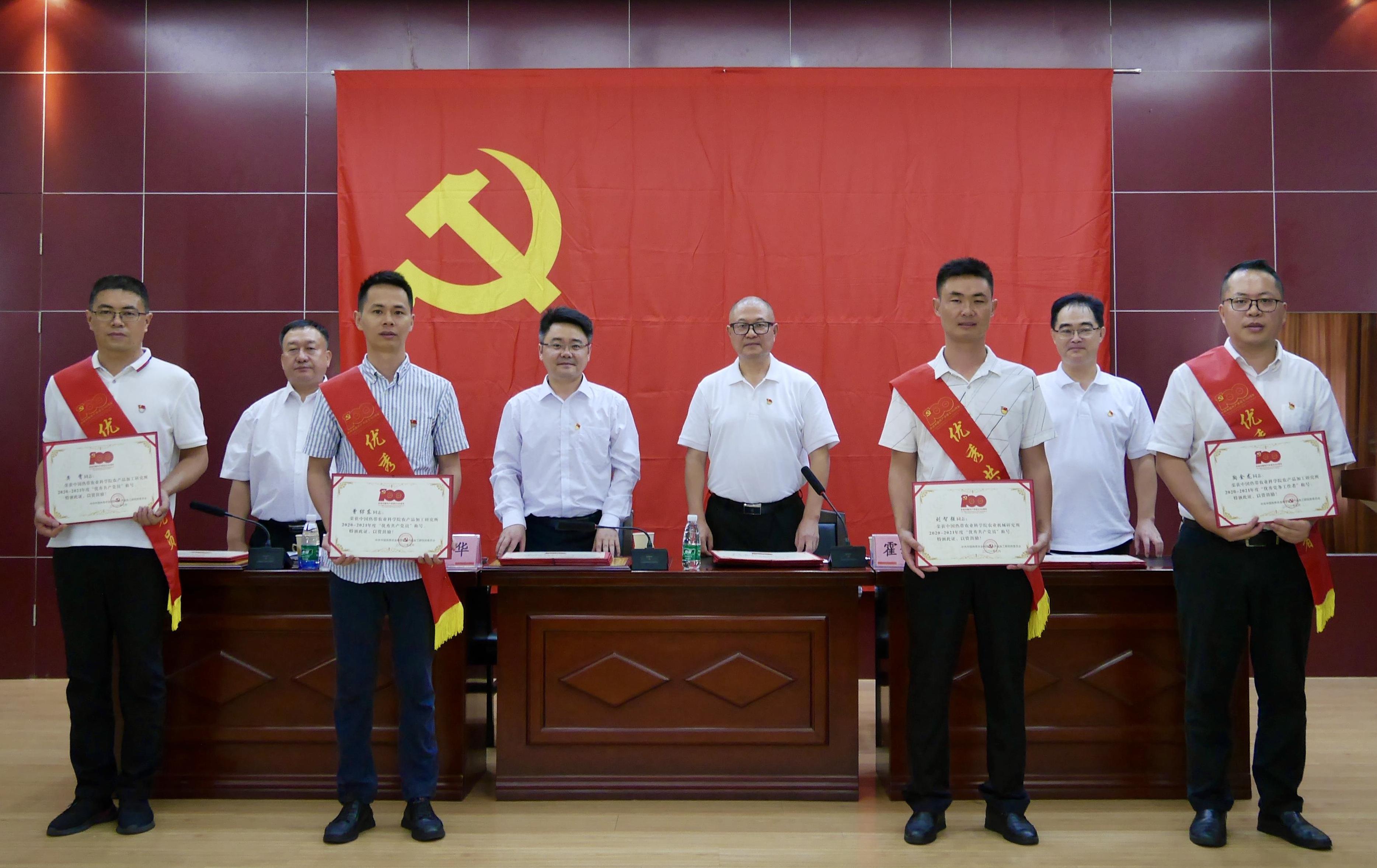 党委委员李端奇宣读了加工所党委关于表彰“两优一先”的决定,授予15人“优秀共产党员”称号,授予7人“优秀党务工作者”称号,授予2个党支部“先进基层党组织”称号。所党委希望受表彰的党组织和个人组织珍惜荣誉,把荣誉转化为动力,以更加坚强的党性、更加振奋的精神、更加务实的作风、更加强烈的使命感和责任感,攻坚克难、开拓创新,再创佳绩。所党委号召全所各级党组织和广大共产党员要以受表彰的先进典型为榜样,保持时不我待、只争朝夕的精神,坚定扛起打造国家热带农业科学中心、建设世界一流热带农产品加工科技创新中心的使命担当,奋进新时代、展现新作为、做出新贡献!