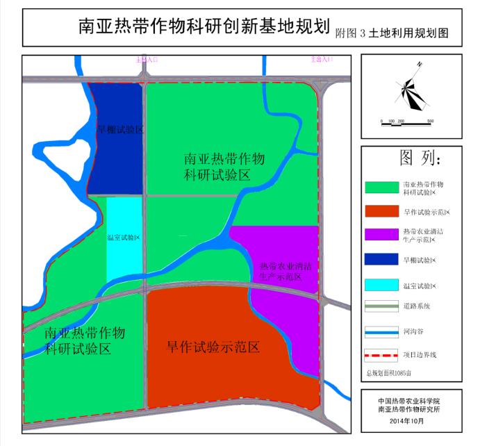 项目建设紧紧围绕热科院“一个中心、五个基地”的中长期发展目标和“四个院区、两个窗口”的发展格局,以提高科研试验基地有效利用为原则,统筹规划,合理调整用地结构,优化空间布局;通过科学规划与精心实施,将基地建设成设施配套完善、生态环境良好、用地布局合理、管理规范化、集热带农业科技创新试验、技术研究、熟化与集成展示、科技实践、人才培养于一体的精品型试验基地,提高院所科研条件共享与智能化水平以及现代热带农业科技水平和“三农”服务能力。