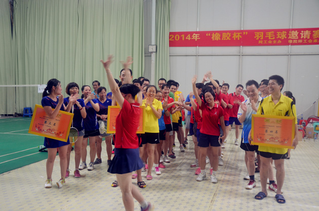 7月11日-7月15日,为了迎接我院60周年华诞,进一步推动全民健身活动,丰富我院职工文化生活,培养个人挑战与团队合作意识,增强职工队伍凝聚力,由院工会主办、橡胶所工会承办的院2014年“橡胶杯”羽毛球邀请赛在橡胶所羽毛球馆隆重举行。