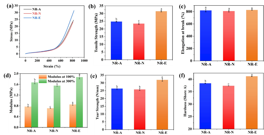 相关研究成果以“Coagulation process-dependent long-chain branching in natural rubber: Relationships with strain-induced crystallization and mechanical properties”为题,发表在《Industrial Crops and Products》。中国热科院橡胶所杨昌金博士后与黄红海副研究员为共同第一作者,中国热科院橡胶所李积华研究员、中国热科院加工所/三亚研究院彭政研究员、海南大学廖双泉教授为共同通讯作者。该研究得到了国家重点研发计划、海南省博士后研究项目等项目的资助。