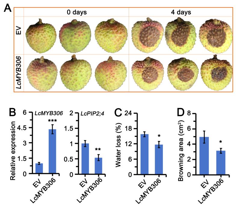 图1 LcMYB306抑制LcPIP2;4表达调控荔枝失水与褐变
