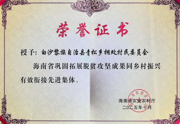 近日,品资所南药研究中心党支部定点帮扶的白沙拥处村荣获“海南省巩固拓展脱贫攻坚成果同乡村振兴有效衔接先进集体”。这既是对拥处村振兴成效的认可,更是对品资所南药党支部七年如一日科技帮扶的充分肯定。