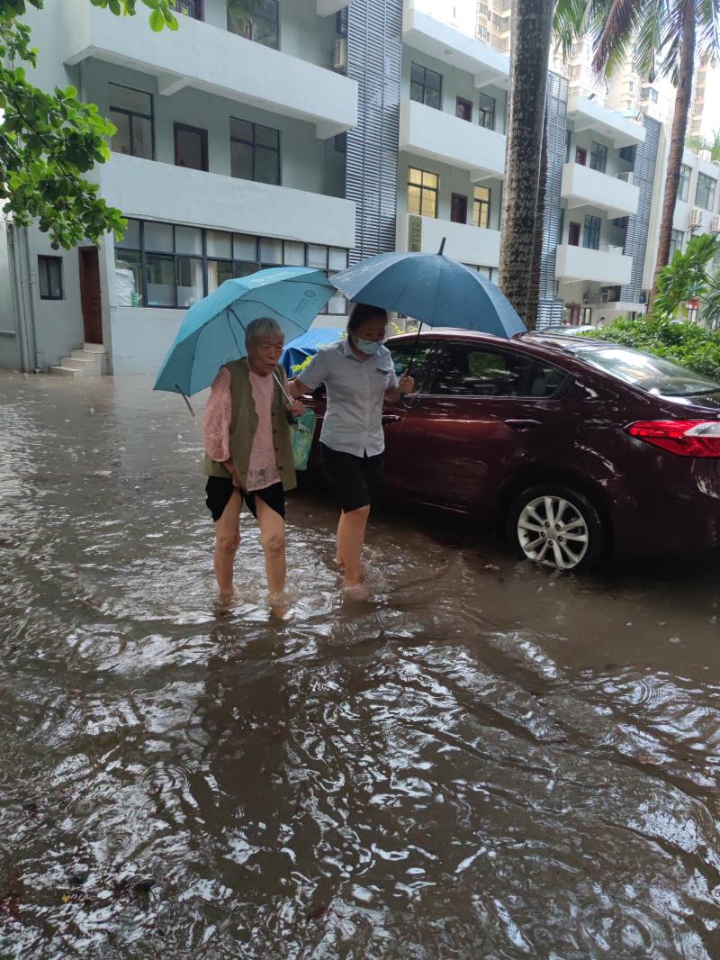 本次暴雨抢险救灾因措施得当,处理及时,全院设施设备及安全得到良好保障。累计处理隐患12处;检查并清理路面、地下车库、天面等排水渠、排水口淤泥堆积堵塞86处;巡查各区域地下车库潜水泵46台;启用抽水泵7台;地下车库口、单元口、商铺等易进水区域启用防洪沙袋342袋。暴雨过境后,物业党员及部门负责人迅速行动,对海口院区主要道路进行全面清扫,清除路面杂物、污泥,晚上8点半,主要道路安全隐患全部消除,路面恢复整洁畅通。