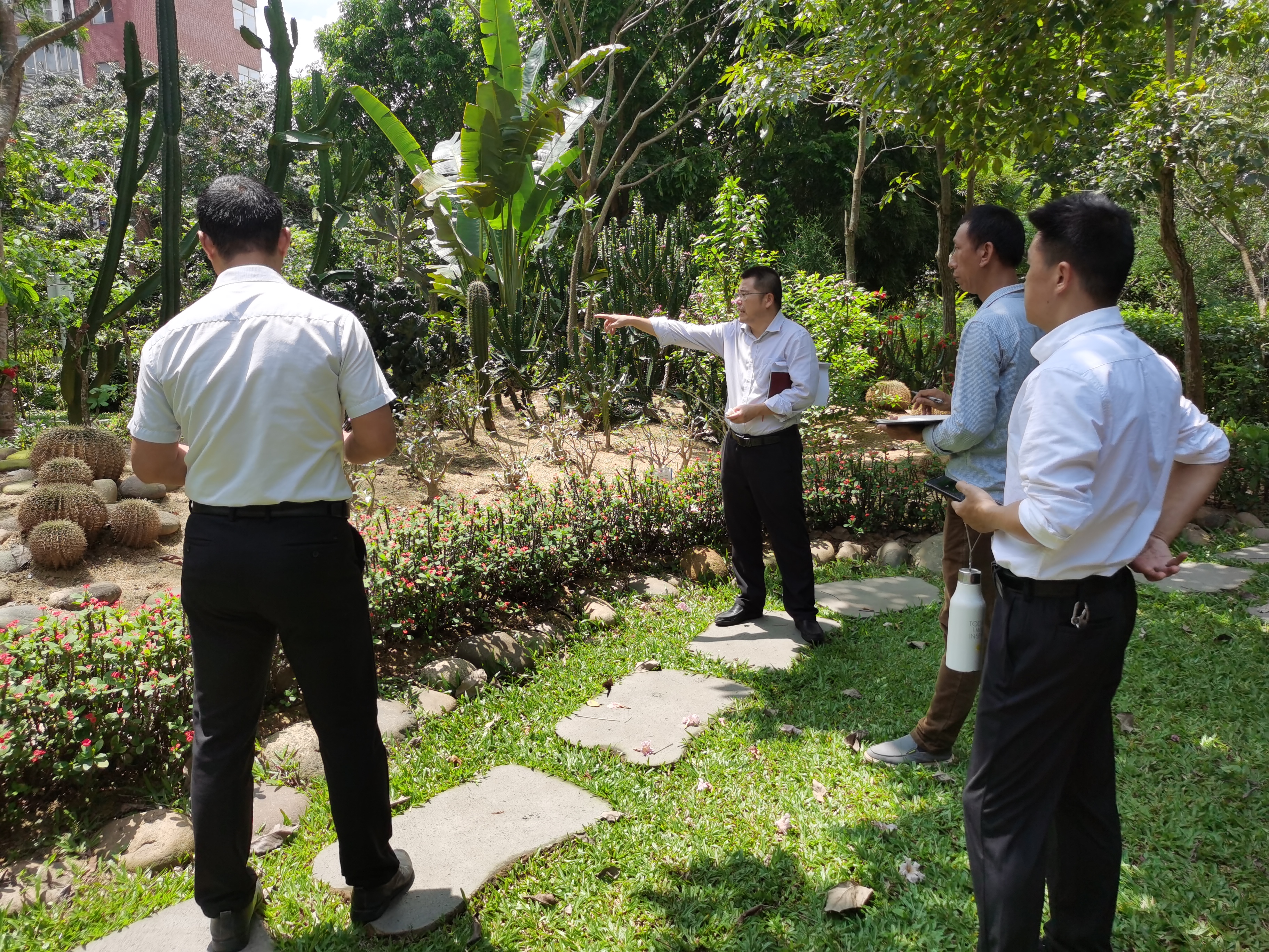 加快海口热带农业科技博览园建设是我院2022年的重点工作。为了贯彻落实院的决策部署,充分发挥好海口博览园的农业科普、研学培训、科技交流功能,充分展示热带农业的科技内涵,4月22日后勤中心主任陈志权一行到海口院区植物园、百果园、百花园、办公区周边等整个园区进行逐一检查落实。