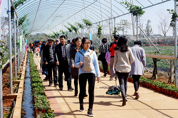 春节期间南亚所热带生态农业示范基地里,圣女果、青枣采摘、珍稀植物参观等休闲农业体验,受到自驾游的青睐,客流爆满,轿车排成长龙。