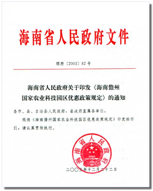 海南儋州国家农业科技园区优惠政策规定