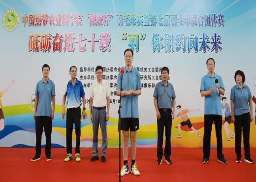 为庆祝新中国成立75周年、中国热科院建院70周年,5月18—20日,中国热科院在海口院区举办“橡胶杯”羽毛球赛暨第七届羽毛球混合团体赛。院党组书记崔鹏伟、副院长方骥贤、羽毛球俱乐部会长李开绵、橡胶所党委书记邹奎出席活动,崔鹏伟书记致开幕辞。