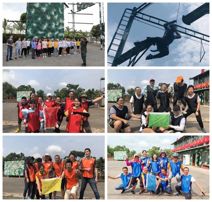 上午八点,志愿者们兴高采烈地从海口院区出发,到达训练基地。活动开始前,教官通过以小组为单位的系列小游戏,迅速拉近彼此之间的距离,让大家积极投入到活动中。快乐的游戏后,志愿者们开展向“高空断桥”项目发起挑战。该项目要求参训学员在9米高的断桥上从一边跳到另一边然后返回,跳跃的距离为1.1米左右。当大家爬上9米的高空断桥时,心脏已是激烈跳动。脚踩狭窄的铁板,虽然穿有安全衣,但是内心恐惧依然难以克服。但看着下面队友信任的眼神,不能犹豫,没有退路,于是纵身一跃,成功了!志愿者们以小组为单位,一个个勇敢挑战了“高空断桥”项目,学会了在压力和困难面前及时调整心态、勇于尝试、战胜自我。